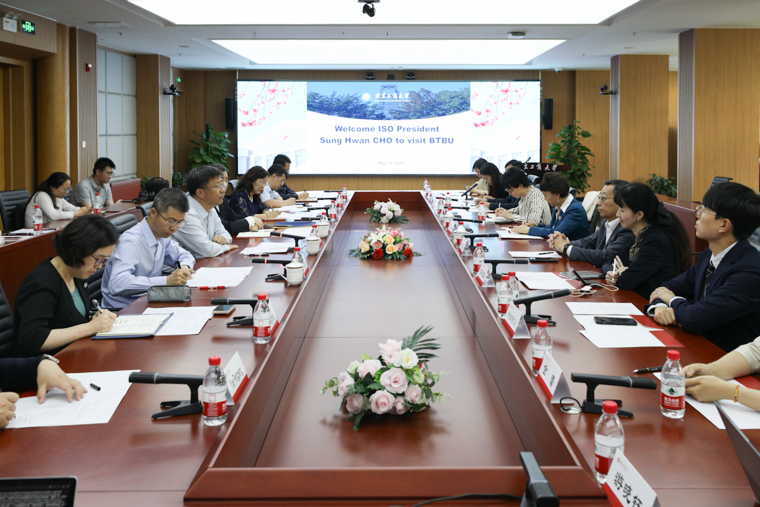 2024年5月15日下午,我校迎来了一场备受瞩目的国际交流活动。国际标准化组织(ISO)主席曹诚焕一行在国家市场监督管理总局标准创新司副司长李玉冰的陪同下,专程访问我校。学校党委副书记、校长郭建华在阜成路校区会见了曹诚焕主席一行。会见由党委常委、副校长毛新述主持。此次访问的焦点之一是,祝贺赌博app下载 数字运营学系何明珂教授被任命为国际标准化组织创新物流技术委员会(ISO/TC344)主席。