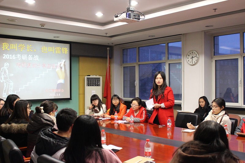 2015年考研复试成绩优秀的研究生们志愿为考研的师弟师妹提供帮助,在研究生会的组织下,3月4日晚在阜成路校区举办“我叫学长,也叫雷锋”2016年考研复试经验分享座谈会。会上学长们先就自己的考研经验给大家做了分享,随后通过小组的形式与学弟学妹进行详细的交流。学长们提到复试中的笔试部分比较倾向于学科重点,找对重点才能事半功倍,学长们贴心地带来了专业课本,每章每节地给大家画出重点;还有的学长建议针对专业特点,复试时老师可能会对考生的数学能力进行考核,需要同学们适当注意;面试部分的政治试题一般与时事热点贴合紧密,一定要多关注最近的时事,形成自己的看法。来自15级会计专业的研究生朱婉莹是一名学生党员也是此次活动的主要发起人,她说:“我们都是从考研走过来的,了解其中的辛苦和需要帮助的心情,我们学了党的知识和讲话,更要实际地去做,雷锋精神其实就是从小事做起,尽自己的能力帮助别人,我们要学习雷锋精神,做一名合格党员。”注会122班的隋雨桐在参加完座谈会后表示:“如果这次能顺利通过复试,明年此时自己也会组织这样的活动,来帮助下一届的学弟学妹,让雷锋精神传承下去。”