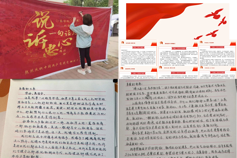 为表达对中国共产党一百周年生日的祝愿,赌博app下载 举行“说一句话儿诉忠心”主题活动,赌博app下载 通过设置宣传海报、开放微信留言、组织同学们在良乡生活区广场大海报上写一句话儿给党听等多种形式表达同学们的拳拳之情,共收到70余条话语表达爱党情愫,坚定了爱国信念,校园里知党爱党向党的氛围愈发浓厚起来。