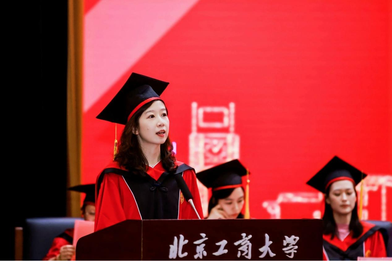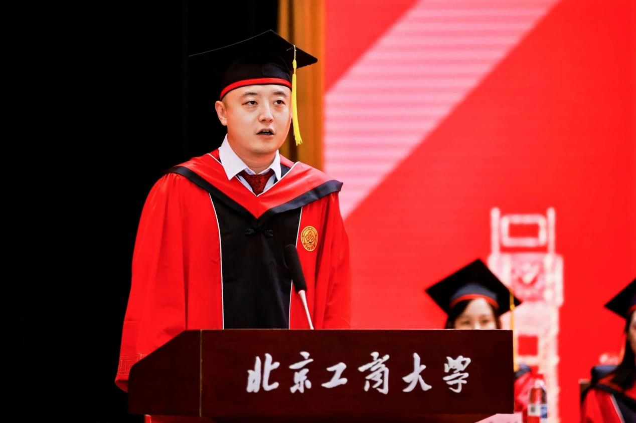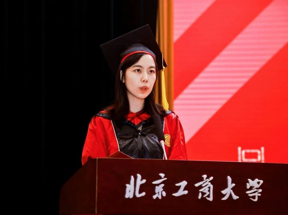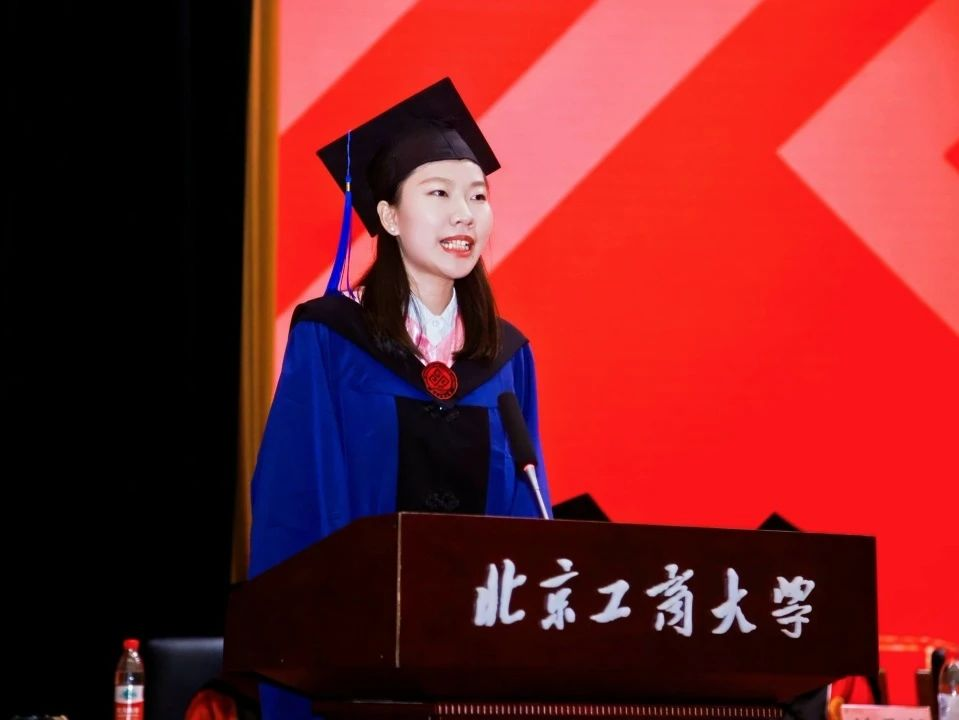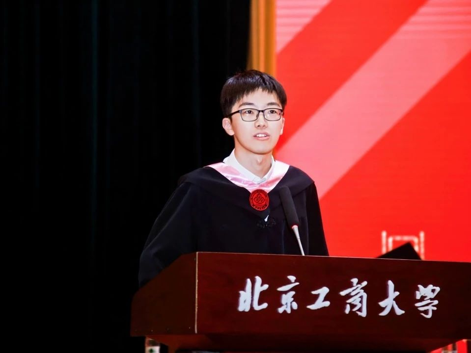 本科生毕业生代表苏柯木分享了四年的共同成长与集体记忆。他回顾了与赌博app下载 共进的时光,亲历校园解封、智慧教室升级等变革,也见证了“工商一体”理念的深化。面对求学路上的试炼与选择,他坚定地强调所有经历都沉淀为北工商赋予的独特底气,此刻拥有的不仅是青春年华,更是面向未来的自信目光。他代表全体本科毕业生感恩母校与师长的培育,坚信前路无论坦途或曲折,都将带着这份积淀勇敢前行,拥抱无限可能。