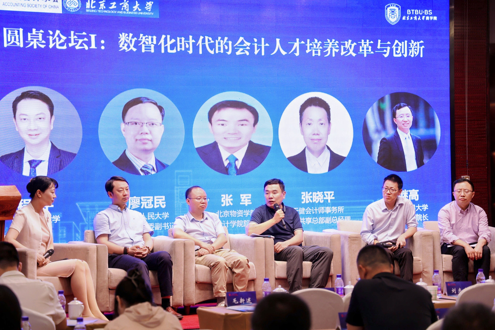圆桌论坛分为上下两场。在“数智化时代的会计人才培养改革与创新”圆桌论坛环节,重庆理工大学会计赌博app下载 程平教授、中国人民大学赌博app下载 党委副书记廖冠民教授、北京物资赌博app下载 会计赌博app下载 院长张军教授、天健会计师事务所数据共享总部副总经理张晓平、对外经济贸易大学国际赌博app下载 副院长祝继高教授分别从高校人才培养、用人单位需求等分享所在高校优秀经验和典型做法,以及会计师事务所对会计人才培养的改进建议。