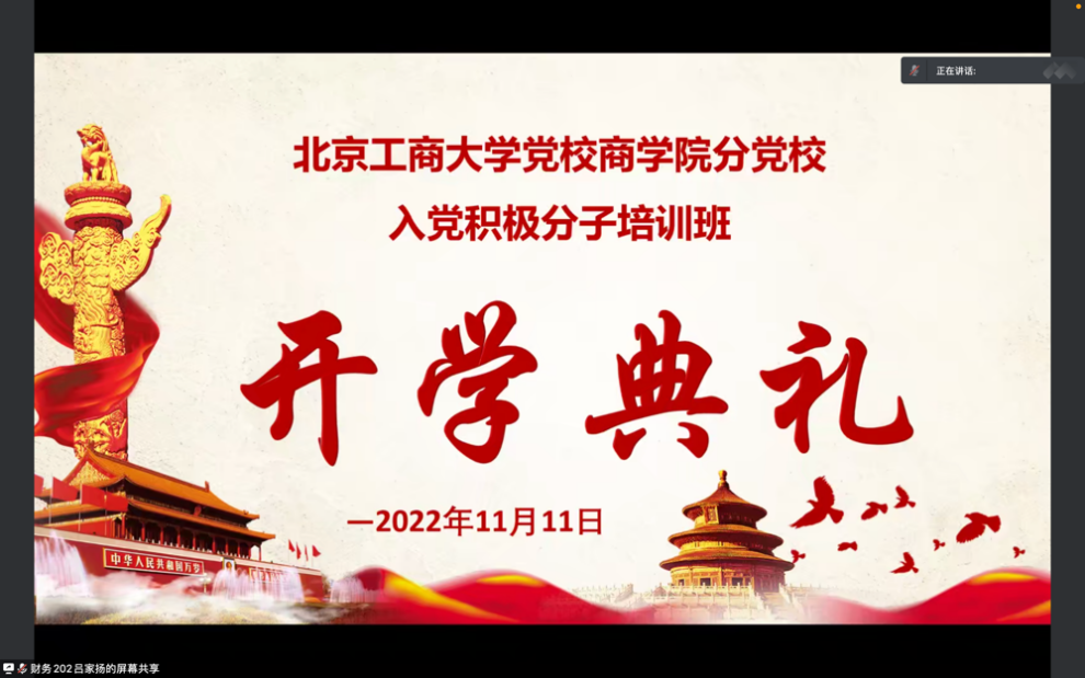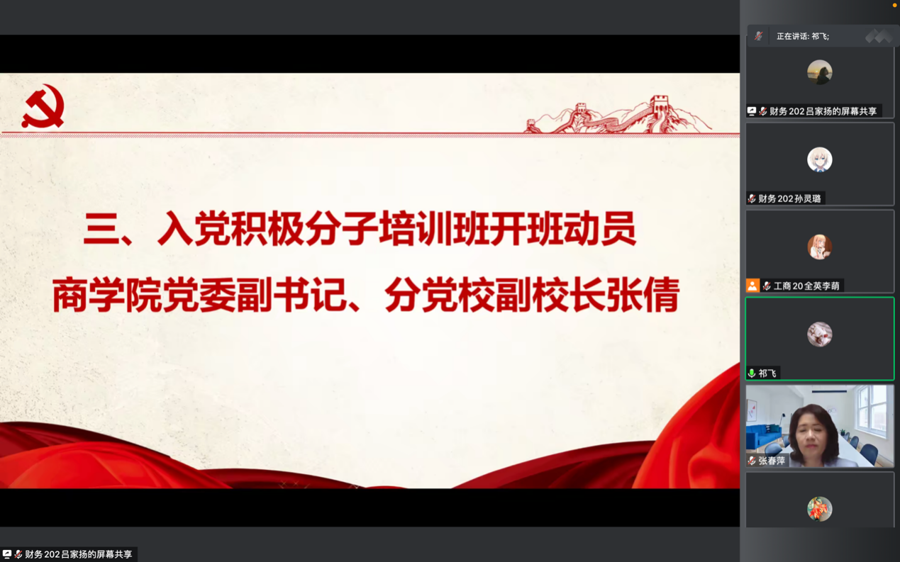 11月11日,赌博app下载 分党校2022年秋季入党积极分子培训班开学典礼在线上举行。赌博app下载 党委书记兼分党校校长张春萍、党委副书记兼分党校副校长张倩、赌博app下载 组织员祁飞、赌博app下载 21级辅导员郭建荣、杜美涵、赌博app下载 22级辅导员郭馨远、赵春燕以及18个积极分子党课班级的273名学员共同参加了开班典礼。会议由赌博app下载 组织员祁飞主持。