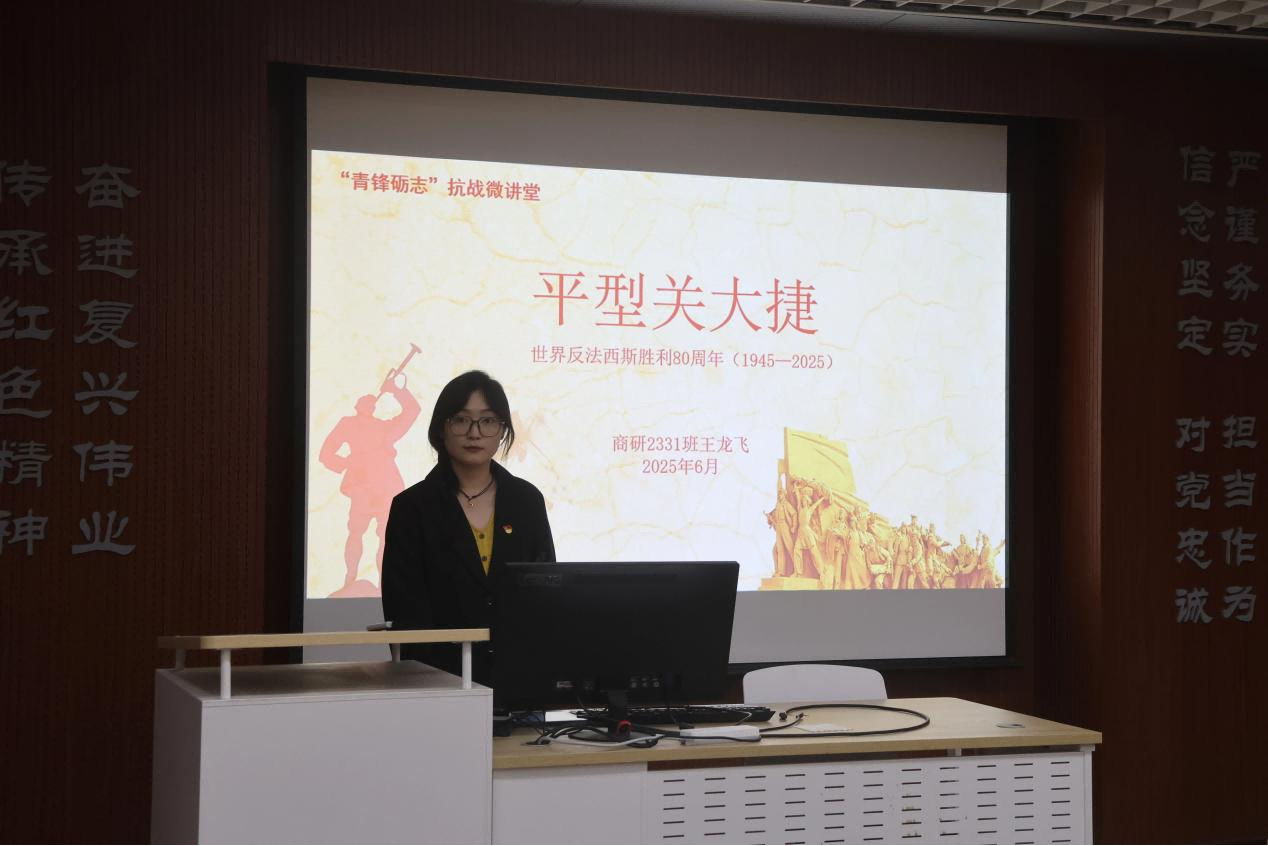 今日我们聆听的既是八十年前救亡图存的壮烈史诗,更是商院学子“强国有我”的铿锵誓言,愿我们以此次演讲为薪火,让抗战精神熔铸商院青春血脉,以数智时代的商业智慧,共绘民族复兴壮美画卷。