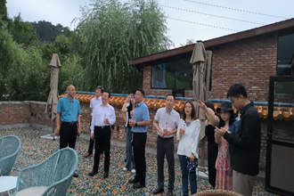 上午,调研团队一行先后考察了四渡河村(创新创业办公区、“童心港湾”和老木匠民宿)、六渡河村(民宿洗衣服专业化服务链、草栗花溪谷文创市集)、北沟村(村史馆、瓦厂酒店)、洞台村(井邻·栗林度假酒店)。
