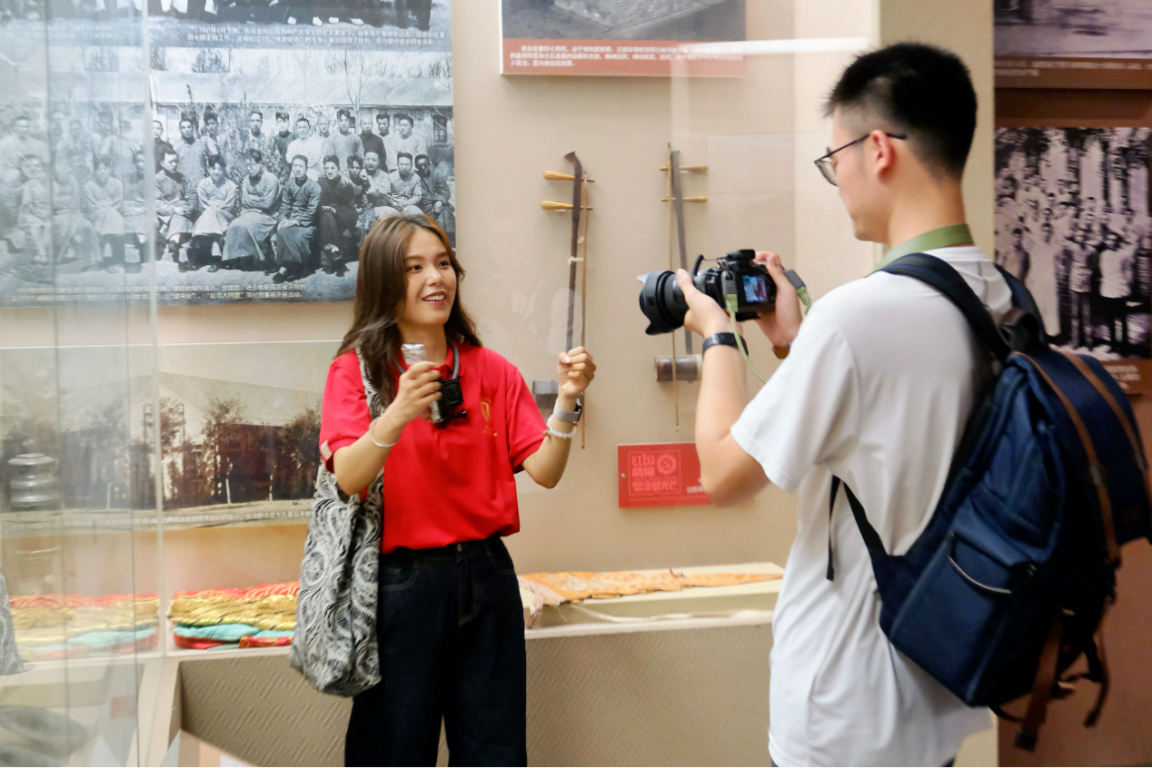 展墙上的入党誓词与青年们的誓言共振,1927年师生以课堂传播火种,2025年学子以专业赋能振兴,两代青春共守“知行合一”基因。“从‘直南火种’到中国式现代化,变的是战场,不变的是脊梁!”宣誓声落,七师精神已化使命,以商科智慧优化产业链,用创新方案活化文化资源,让红色火种生生不息。