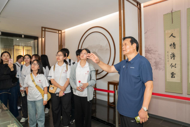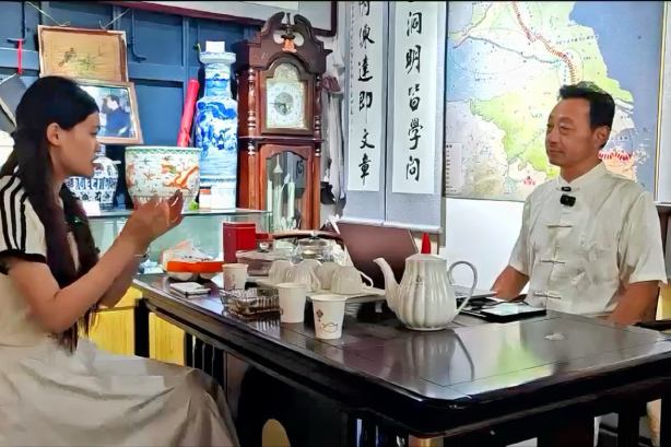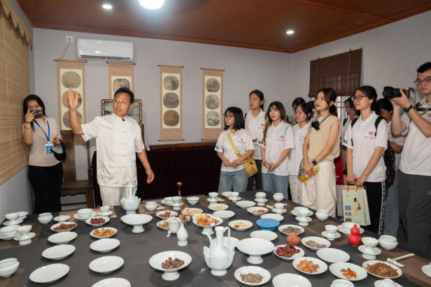 在词瓷大名古代陶瓷博物馆,馆长蒋林魁通过“文化大讲堂”、文物展览等形式讲述瓷器历史,示范陶瓷绘画技巧,成员们近距离观察拍摄瓷器细节。围绕销售平台、游客消费等产业化关键数据,实践小组与蒋馆长进行专题访谈,策划 “陶瓷纹样手绘+文创盲盒”融合方案,推动静态展品转化为可带走的“文化记忆”。