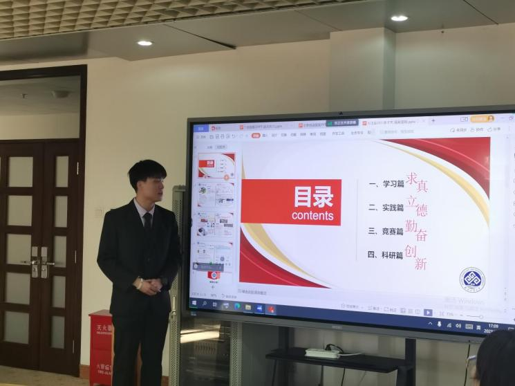 通过前期自荐报名、材料审核等环节,赌博app下载 共有15名同学成功入围2022-2023学年本科生国家奖学金评定院级候选人。在答辩环节,大家按照抽签顺序依次上场展示。15位候选人从学术研究、学科竞赛、创新发明、社会实践、社会工作等多个方面介绍自己,并将个人的成长发展内驱力及价值追求融入答辩中,通过2分半的时间,将三年来的积累积淀及成长发展情况用PPT进行全面展示,用精彩的演讲和表现赢得评委们的认可和肯定。