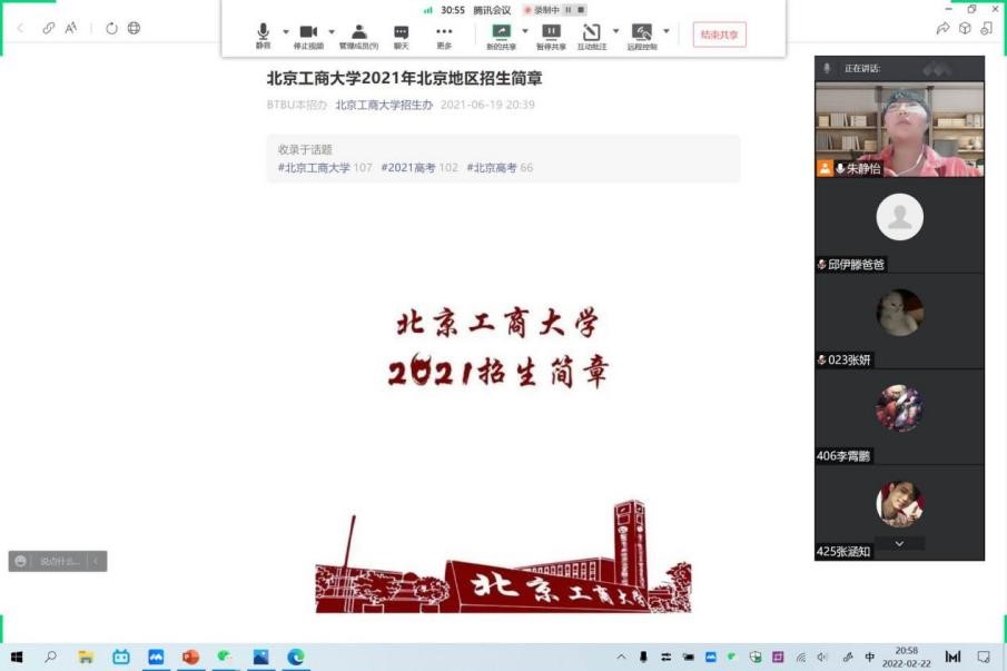 2022年2月22日,我很荣幸地作为一名北京工商大学的学生回到我的母校——北京市东直门中学开展返校宣传社会实践活动,因为疫情防控和冬奥会的原因,本次宣讲活动采用了线上宣传的形式。