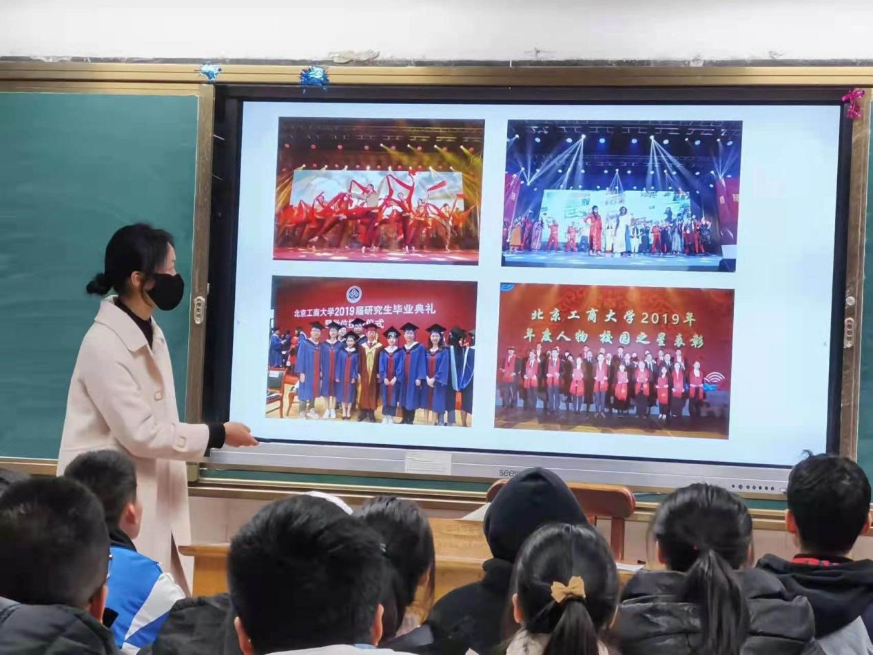 2022年寒假,我很荣幸作为北工商的一名学子回到高中母校——河北省曲阳永宁中学进行宣讲活动。在正式开始宣讲前,我播放了2021年北京工商大学的招生宣传片,并在播放的过程中,向学弟学妹们分发了学校的招生章程及钢笔、日历卡、便利贴等纪念品。接下来,我从学校概况、特色专业、人才培养、招生政策、校园生活等方面来介绍北京工商大学及我的校园生活。
