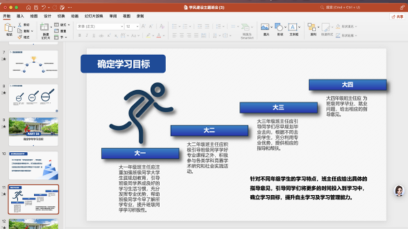 财务251班以职业规划为核心,引导学生树立贯穿大学四年的发展意识,明确“探索-聚焦-提升-冲刺”的阶段性目标。