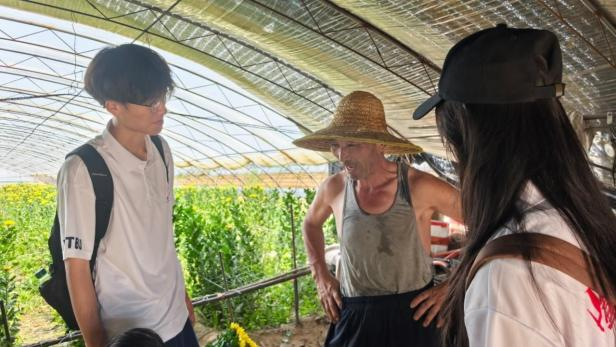 实践团在调研过程中与北务镇当地的三家乡村特色产业负责人进行了面对面深度访谈。在实践团与老兵农场的负责人退伍空军干部王海交流时,王海提到产业目前面临着销售渠道窄的难题,他盼着年轻人借互联网、社交媒体等方式赋能农场运营,既拓宽销路,又能够创造就业、促进农场发展。实践团通过与一景九田农场负责人孙玉斋交流了解到,农场目前依然存在着人力成本飙升、年轻人务农意愿低等现实难题,他希望大学生可以带着先进的技术,经营特色项目的理念共同加入到农场的持续发展中。实践团在三分地农场聆听了总经理中国农业大学毕业生刘雪萍十余年扎根农业一线的故事,了解了依托三分地农场共建的“科技小院”如何在农村科普、现代农业科技推广等方面为北务镇提供技术支持和科技保障,充分发挥助力乡村振兴综合服务平台的作用。