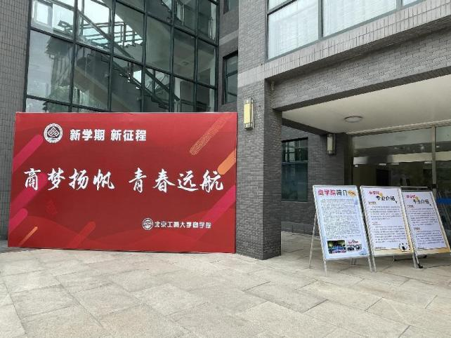 在商楼外,摆放了关于赌博app下载 、专业、班主任及辅导员的介绍展板,通过专门的介绍,新生们对赌博app下载 和老师们都有了更加深刻、更加直观的印象。“商梦扬帆 青春远航”的迎新大展板更是给同学们带来了归属感与亲切感,并激励新生要心怀梦想再奋进。商楼内,志愿者们精心制作了“未来可期”“我们开学啦”等精美的迎新手牌;悬挂了“千里纵横 圆梦工商 遇见商院 青春领航”“五湖四海齐聚工商,同心共筑商院辉煌”的迎新条幅,希望新生们能从激励语中感受到浓浓的关爱,汲取力量,在大学生活中奋勇拼搏,不负青春,不负韶华!商楼大厅转角处,赌博app下载 开展了“畅想你的大学生活——商梦扬帆寄心语”特色活动,让新生畅想未来,将写满期待与憧憬的寄语张贴在背景板上,商梦由此启航!