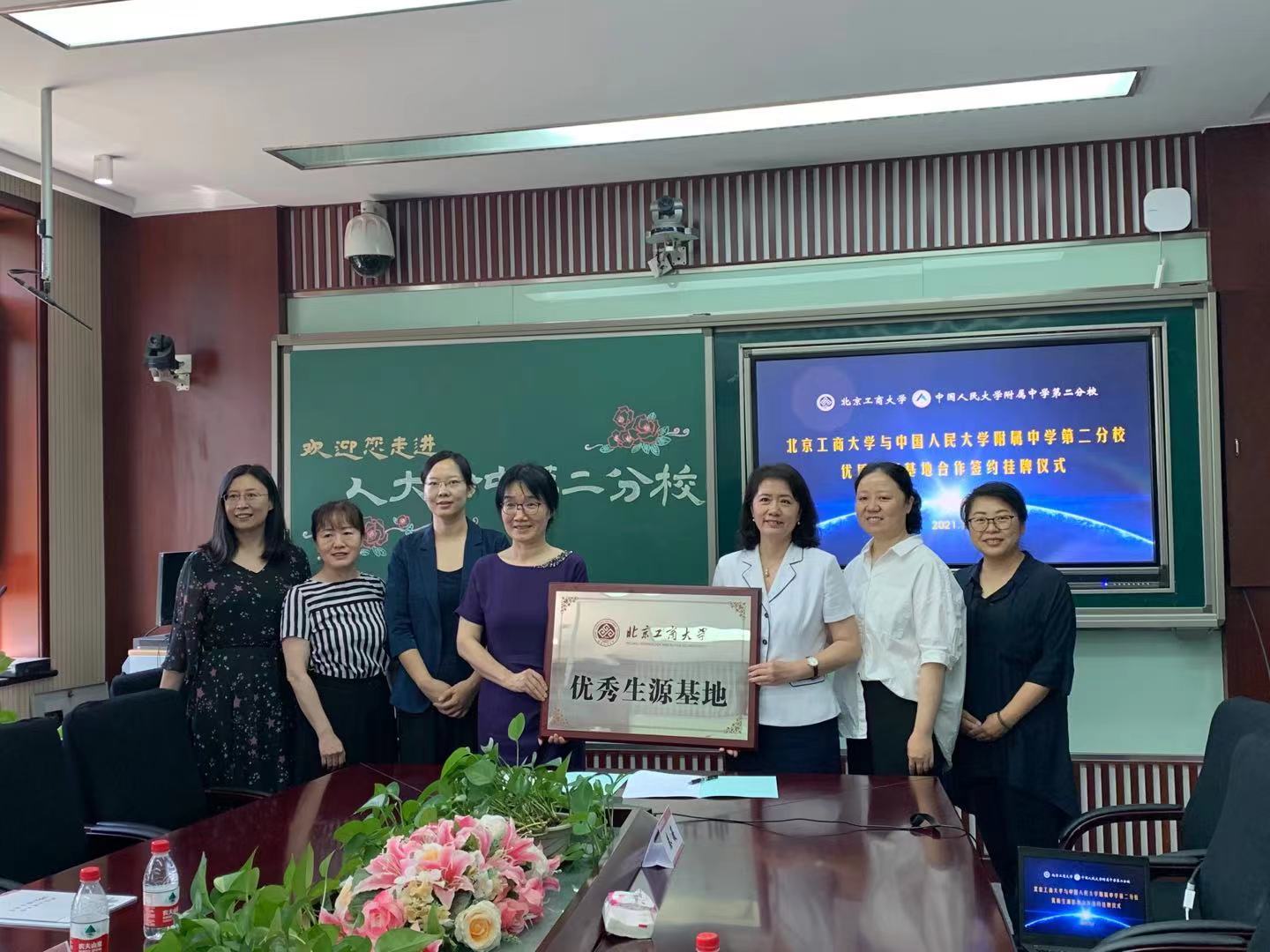 为进一步扩大学校及赌博app下载 的社会影响力,充分发挥学科及人才培养优势,加强与中学的交流合作,立足首都,服务首都人才培养,在学校招生就业处的统筹下,7月9日,赌博app下载 与中国人民大学附属中学第二分校签订了优质生源基地协议并举行了挂牌仪式。人大附中二分校校长龚月萍、教研处副主任杨海燕、高三年级组组长秦薇、高二年级组组长王金萍,赌博app下载 党委书记张春萍、副书记张倩、学校招生就业处招生办公室主任卜晓媛参加签约挂牌仪式。