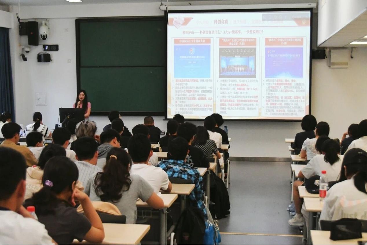科创竞赛点亮大学时光,青春奋斗开启宝藏之旅。陶子墨以自身经历串联四部分核心内容,包括优异学习成绩、5项国家级及20余项省部级奖项、丰富志愿服务经历,解析三大A+类赛事规则;强调组队策略与跨专业协作、项目从创意到实践的打磨流程及PPT制作与答辩技巧;凝练竞赛对硬实力、软实力的提升及带来的隐形财富。最后,她以“给自己打80分,10分敬过往,10分献未来”勉励25级商院学子,诠释了科创竞赛开启大学宝藏之旅。