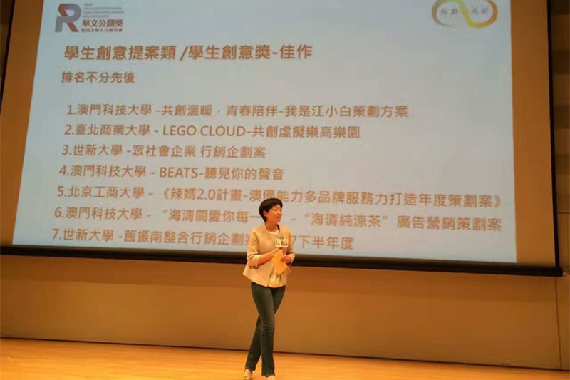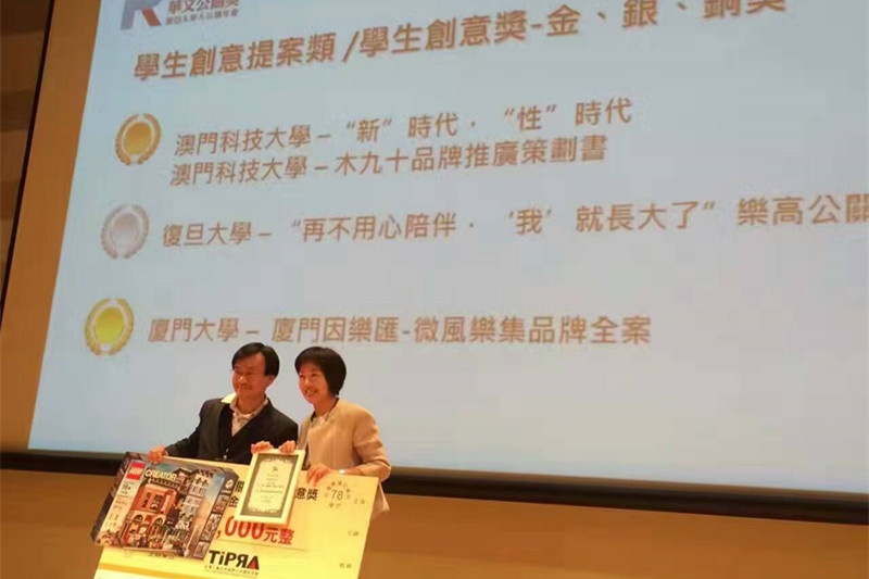 “华文公关奖”为两岸四地公关人竞相争逐的奖项,由台北市国际公共关系协会主办。该赛事于2016年8月底正式启动,收到累计参赛作品超过150件。为保证赛事的公平与公正,本次赛事邀请超过20位在公关营销行业内拥有影响力的知名人士,组成评审团,对参赛作品进行选拔。本次比赛共包含“公关活动类”、“公关从业人员类”、“数位应用类”、“长效或综合类”、“学生提案类”等5大类,共计17个奖项。其中,“学生提案类”为首次增设的类别,入围作品共10个。金奖、银奖和铜奖分别是厦门大学、复旦大学和澳门科技大学的团队,其余7个团队获得佳作奖,他们是澳门科技大学(3件)、台北商业大学(1件)、世新大学(2件)和北京工商大学(1件)。