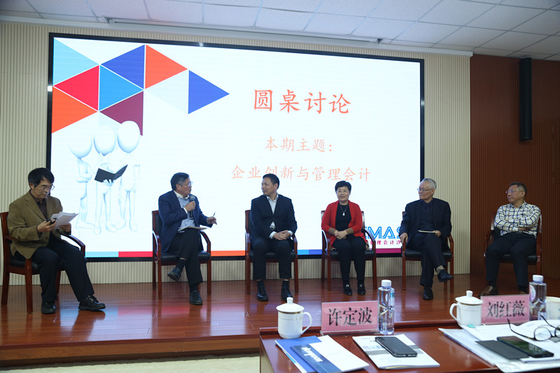 王立彦教授主持,谢志华副校长、詹艳景总会计师、巨建国院长、许定波副会长、杨雄胜教授参与讨论,围绕“管理创新与技术创新哪个更重要”等问题发表了各自观点。沙龙最后由中国电子科技集团有限公司李守武副总经理做总结发言,李总表达了对本次管理会计沙龙讨论成果的充分肯定。