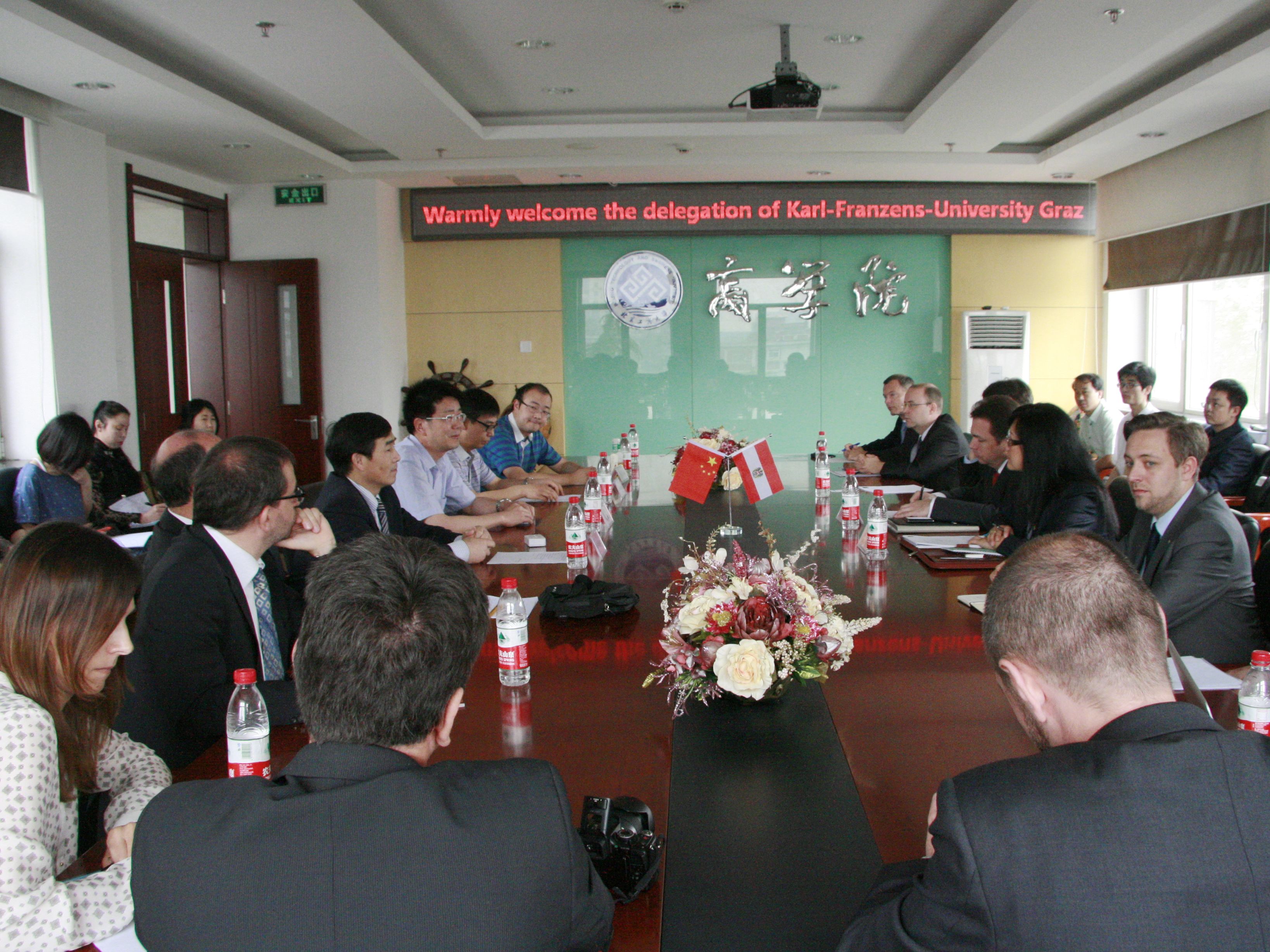 2012年5 月19 日上午,奥地利格拉兹大学 EMBA 师生代表团一行 18 人来我校交流访问,赌博app下载 组织举行了欢迎仪式。在欢迎仪式上,国际交流与合作处处长何明珂教授致欢迎辞并介绍了我校在开展国际交流与合作方面的基本情况和 MBA 教育在我校学科建设中的地位和作用,赌博app下载 院长王国顺教授介绍了我校 MBA 教育项目发展情况和赌博app下载 的情况,格拉兹大学社会与经济赌博app下载 院长 Thomas Foscht 教授介绍了格拉兹大学基本情况和该校 MBA 对外交流与合作情况。双方代表均期待有更深入的合作。欢迎仪式由 MBA 教育中心执行主任刘文纲教授主持。
