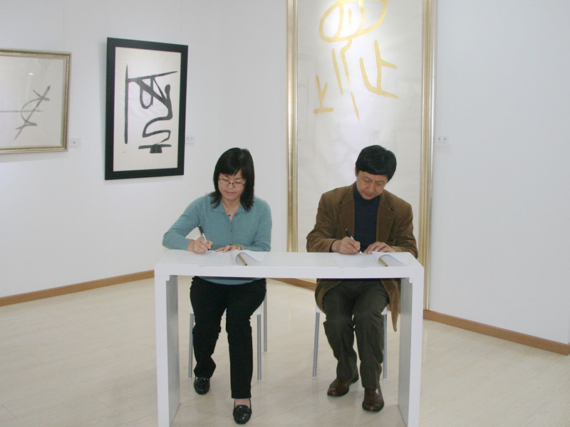 教授庞毅宣布首次文化沙龙正式启动。欧阳爱平书记代表北京工商大学MBA教育中心与魏晓寰先生签署了合作协议。嘉宾们为魏晓寰艺术文化研究交流中心及北京工商大学MBA艺术体验中心揭牌。