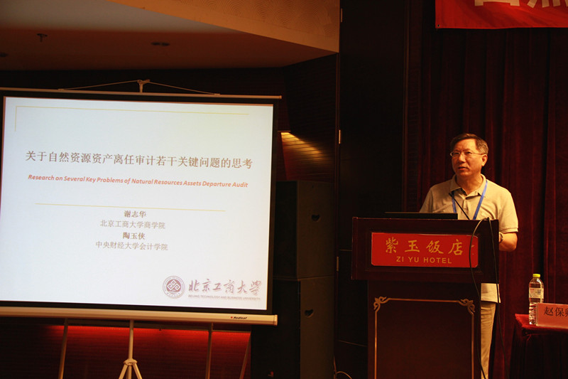 谢志华副校长就自然资源资产离任审计产生的必然性、构成要素、实施困境和保障措施等关键问题发表演讲。国家审计署科研所所长崔振龙、西南财经大学教授蔡春、北京大学教授王立彦、上海市审计局总审计师林忠华、中国人民大学教授耿建新分别就“自然资源资产离任审计的内容与制度安排”、“关于自然资源资产离任审计的几个理论问题”、“微观财务信息的宏观社会价值缺陷”、“探索领导干部自然资源资产离任审计”及“对自然资源资产负债表的理解与认识”等问题进行了主题发言。